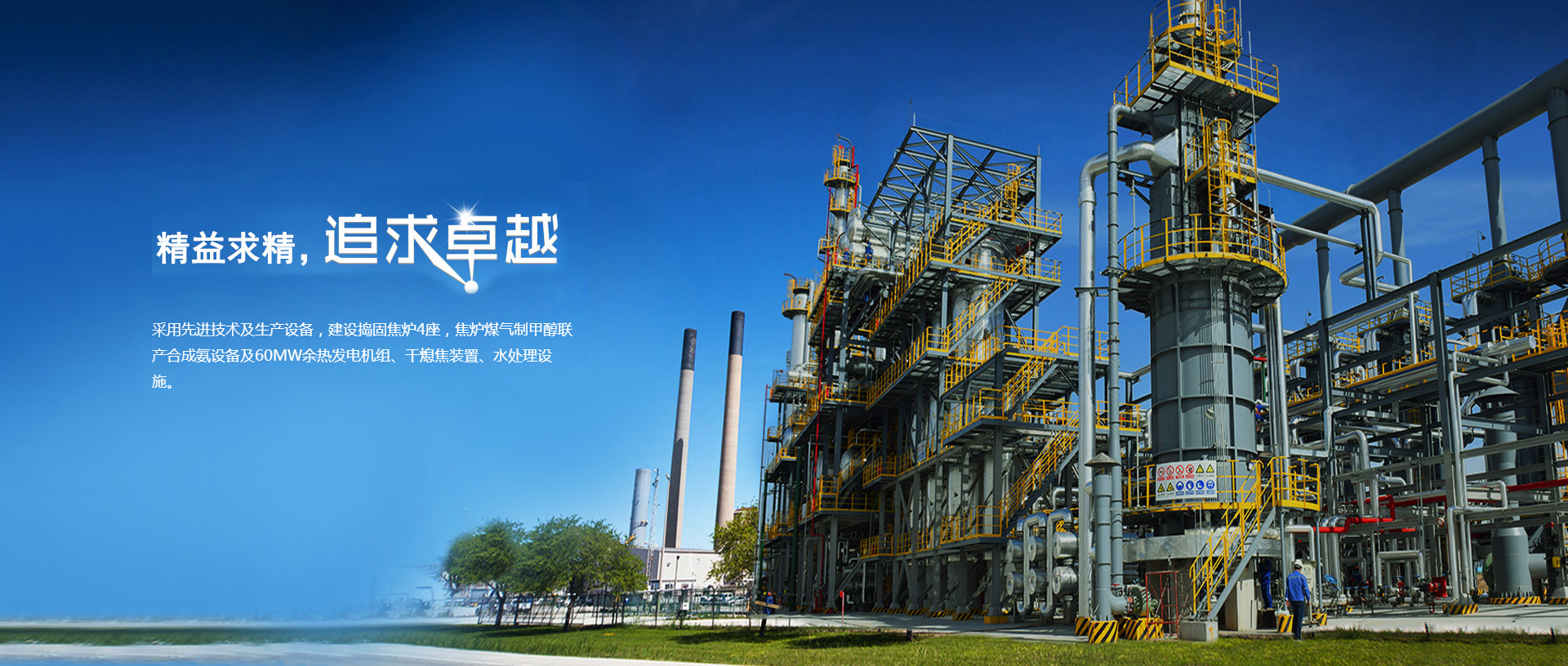 用先進技術及生產設備,建設搗固焦爐4座,焦爐煤氣制甲醇聯產合成氨設備及60MW余熱發電機組、干熄焦裝置、水處理設施。